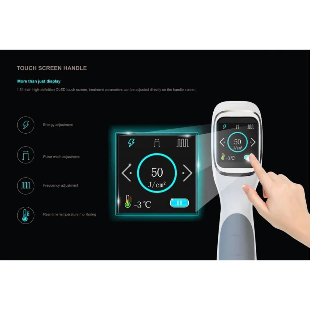 - Установка оснащена тремя разными охлаждающими системами, что позволяет избежать перегрева как кожи, так и самого аппарата.